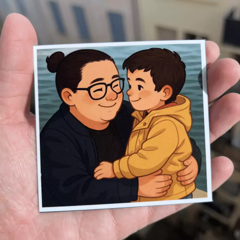 À partir de vos images, je crée une illustration douce et fidèle, à transformer en magnet photo souvenir. Des moments simples, des regards tendres, des petits bouts de vie à conserver sur le frigo.